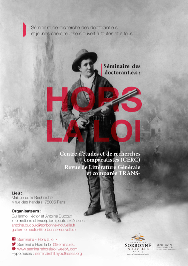 Le séminaire de doctorants Hors la loi (CERC – ED 120 et revue TRANS – ) a le plaisir de vous annoncer la 4e séance du séminaire Hors la loi : « Géopolitique critique des criminalités : le paradigme légal-illégal au prisme des représentations fictionnelles ».