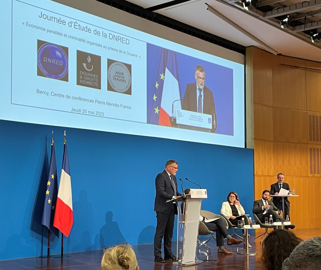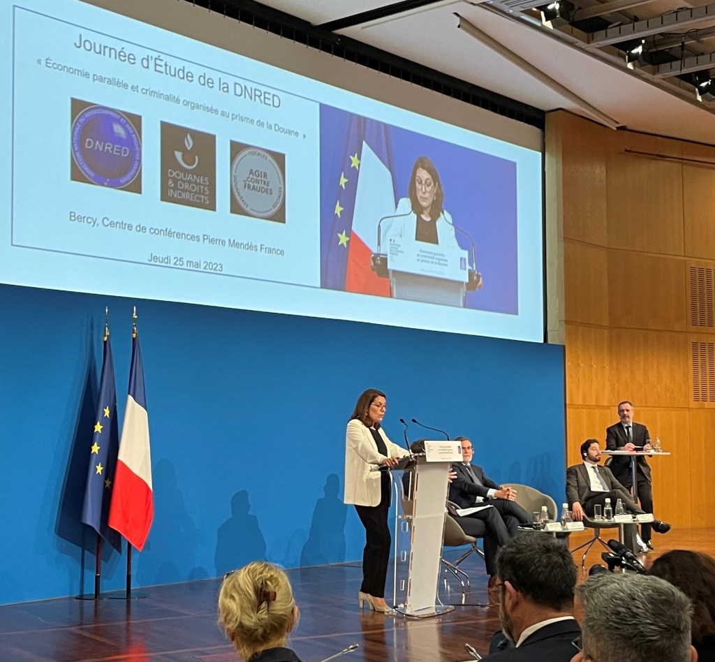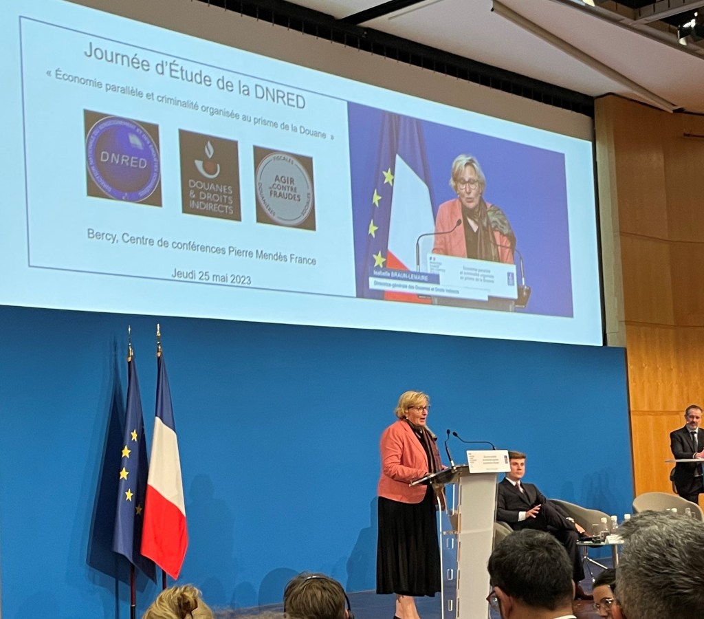 Pour clôturer cette journée, le Directeur National et la Directrice Générale sont venus remercier la salle. “Pour continuer cette lutte, nous devons investir dans des moyens”. Quant au pouvoir des douanes, un “projet de loi pour la douane est actuellement discuté au sénat. Il permettrait de mettre en conformité le code des douanes et d’aller au-delà et renforcer nos moyens. Si il est voté, la DNRED aura la possibilité de s’adapter aux nouveaux réseaux génériques de fraudes et de s’adapter aux nouveautés des réseaux criminels et terroristes. Nos résultats de 2022 étaient exceptionnels. Nous devons pouvoir continuer à faire notre travail, face à un trafic de stupéfiants et à la présence de la contrefaçon de tabac en hausse constante.”