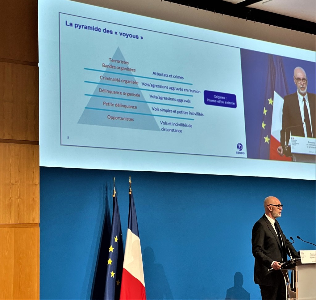 Jean-Jacques RICHARD, responsable de la sûreté de la Présidence chez Elf Aquitaine puis directeur de la sûreté et de l’intelligence économique chez TNT Express France, rappelle que les groupes criminels ont des moyens techniques et d’armement sérieux et précis. Il introduit le schéma ci-contre, La pyramide des « voyous ». Dans les années 2000, la criminalité arrive à un modèle business au sein de la logistique nationale : les groupes veulent répondre à une demande parallèle. L’UE estime à 8.2 milliards d’euros la somme de vol de marchandise. Et d’après lui, c’est un chiffre sous-estimé.