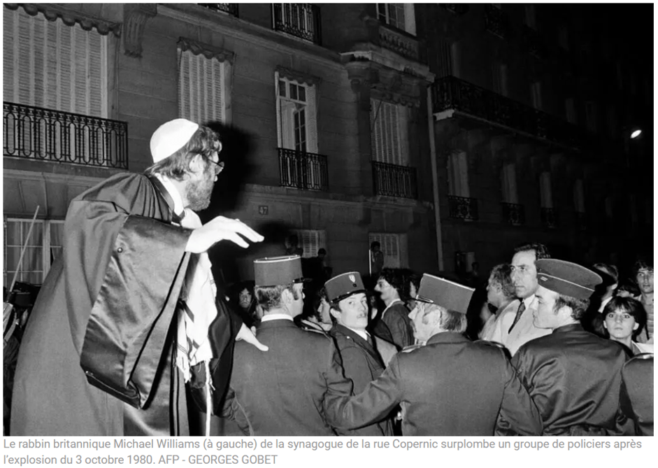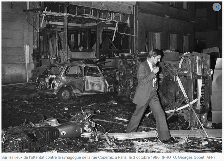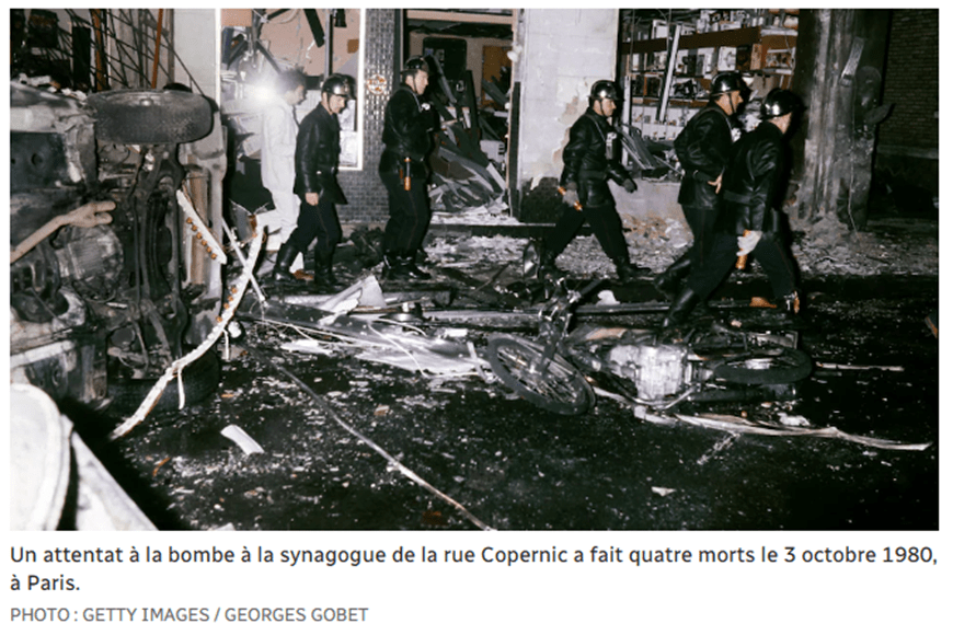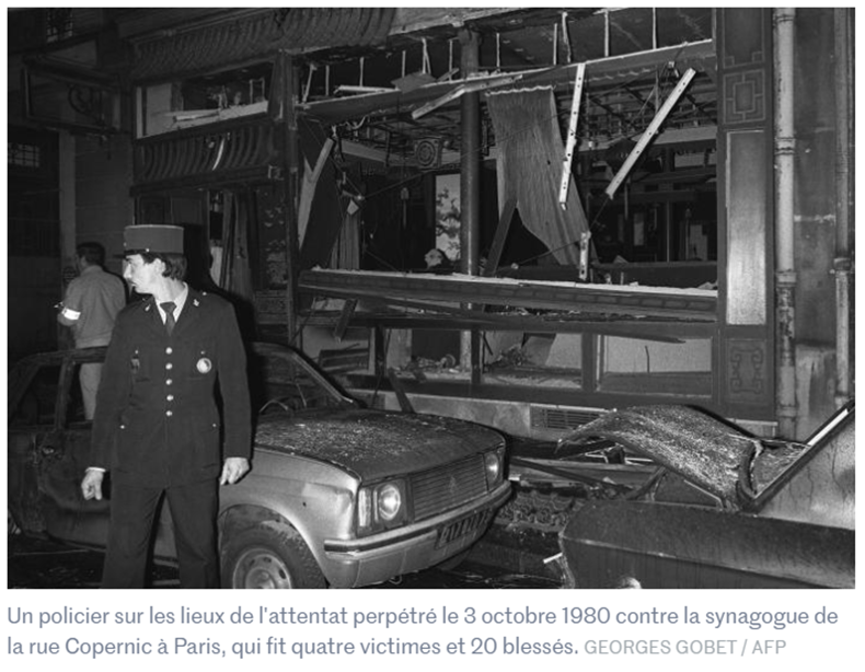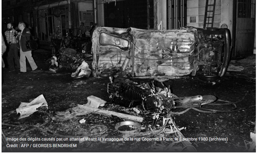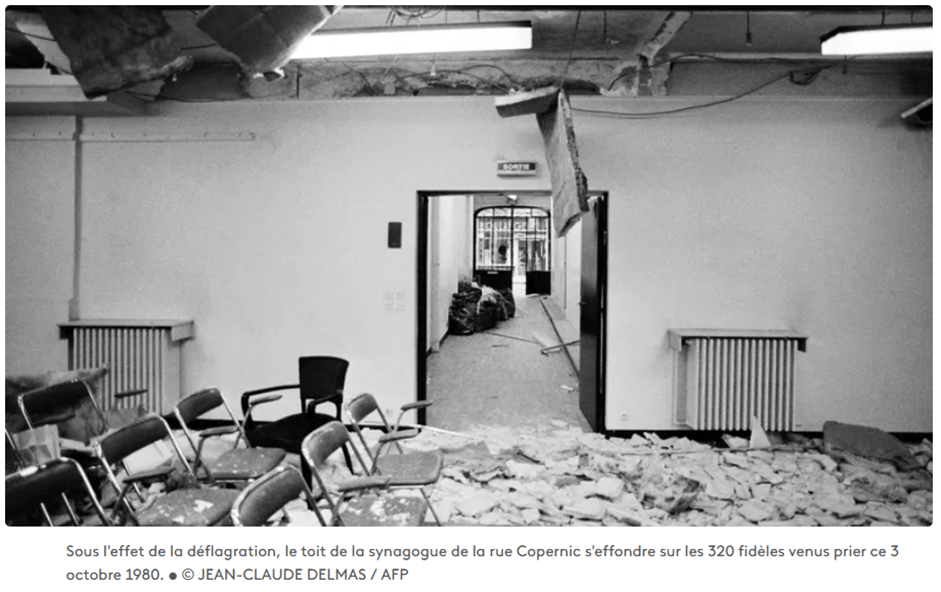 Source : Paul Turban & AFP, Il y a 40 ans, un attentat antisémite vise la synagogue de la rue Copernic, RTL, 3 octobre 2020. URL.