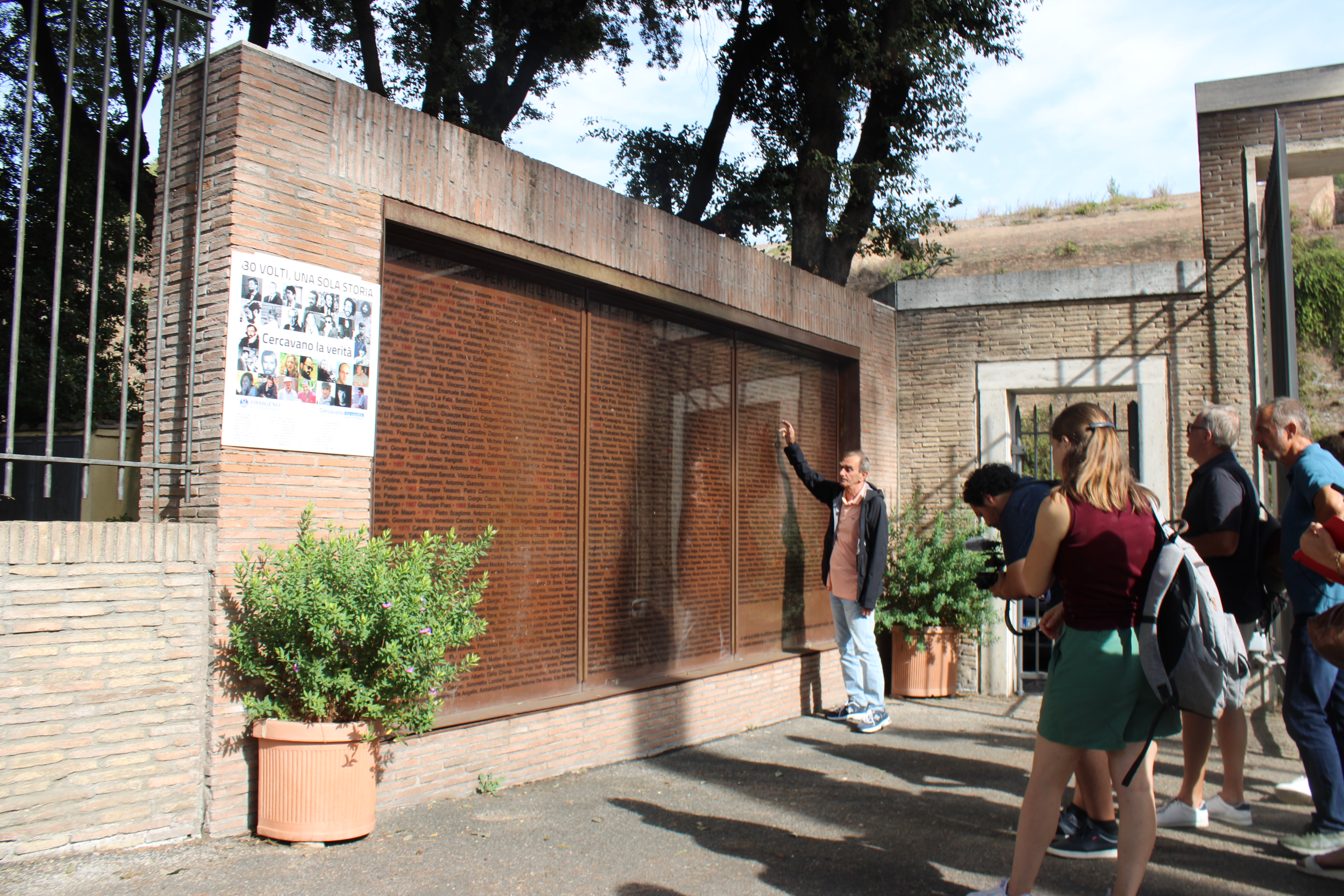 Face au mur des 1 000 noms de victimes innocentes de la mafia. Nous avons échangé sur le concept de victimes innocentes de la mafia. Témoignage puissant, d’autant plus que nous comptons parmi les membres du voyage des familles de victimes marseillaises et corses.