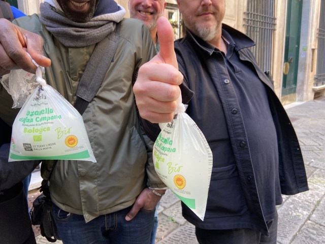 Le lendemain matin à 9h50, nous avons retrouvé Michela Tirone, présidente de l’association Pas à Pas, devant l’ancienne boutique de Vico delle Vigne 10r, confisquée à la criminalité organisée et transformée en lieu d’accueil et d’information. Elle nous a raconté comment, depuis 2014, l’association fait de l’apprentissage des langues un véritable levier d’intégration, de connaissance mutuelle et de cohésion sociale. Malgré les difficultés de financement – et même en pleine crise sanitaire – Pas à Pas a tenu bon : le local a été reconverti en entrepôt pour la distribution de paniers solidaires, et les cours de langues ont été maintenus en visioconférence, puis en format hybride. Ce fonctionnement mixte a d’ailleurs permis, selon Michaela, de favoriser la participation de nombreuses femmes. Aujourd’hui, l’association propose des cours d’italien gratuits à destination des personnes migrantes, des cours de langues étrangères accessibles à tous, ainsi qu’une permanence juridique mensuelle dédiée à la défense des droits. Le tout repose sur un principe de réciprocité : les élèves des cours d’italien deviennent à leur tour enseignants de langues étrangères pour les Italiens. Ces cours, payants, permettent de soutenir financièrement l’activité de l’association. Nous avons été profondément touchés par la force de leur engagement et par ce “contrapasso” que revendique Michaela : faire d’un lieu d’exploitation un espace d’accueil, de savoir et de dignité.